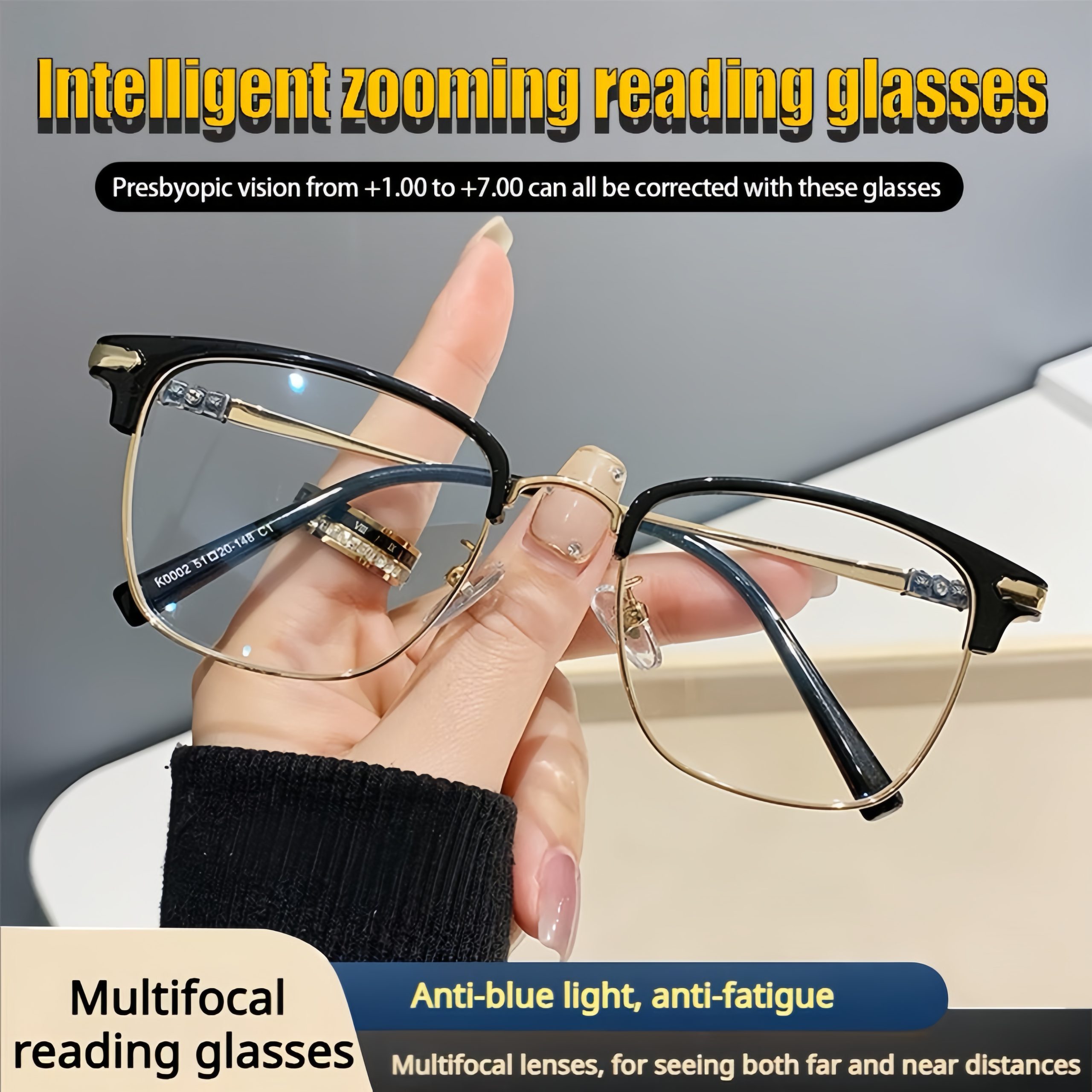 These Smart Progressive Reading Glasses are designed with multi-focus lenses that let you see clearly at any distance—near, far, or in between. Perfect for reading, using your phone, working on the computer, driving, or walking outdoors.